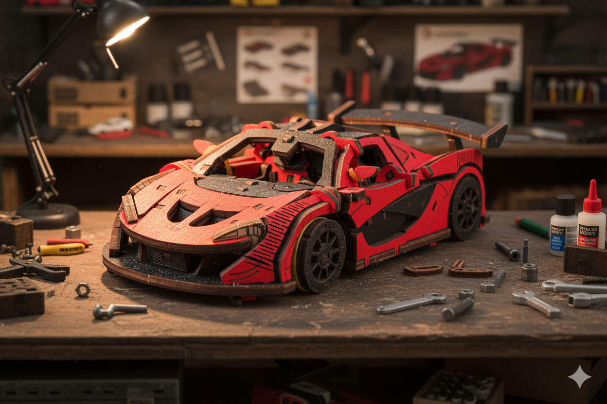 Впуснете се в света на елегантността, технологиите и адреналина с тази червена състезателна кола от Eco Wood Art . Този модел не е само визуално впечатляващ - той е функционално механично чудо, което ще се хареса на всички фенове на бързите колела и моделизма.